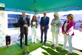 La consejera de Desarrollo Educativo y FP da inicio a las obras de sustitución del edificio de Primaria del CEIP Los Argonautas acompañada por el director general de la Agencia Pública Andaluza de Educación.